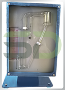 Suitable for measurement of pressures in the range of 10 mm to 10² mm or 10³ mm of Hg. This convenient gauge is a modification of Macleod Gauge. This gauge eliminates the use of a movable reservoir of mercury, and also requires only about 12 cc of mercury for filling. The total size of this gauge is about 9”x6”.
