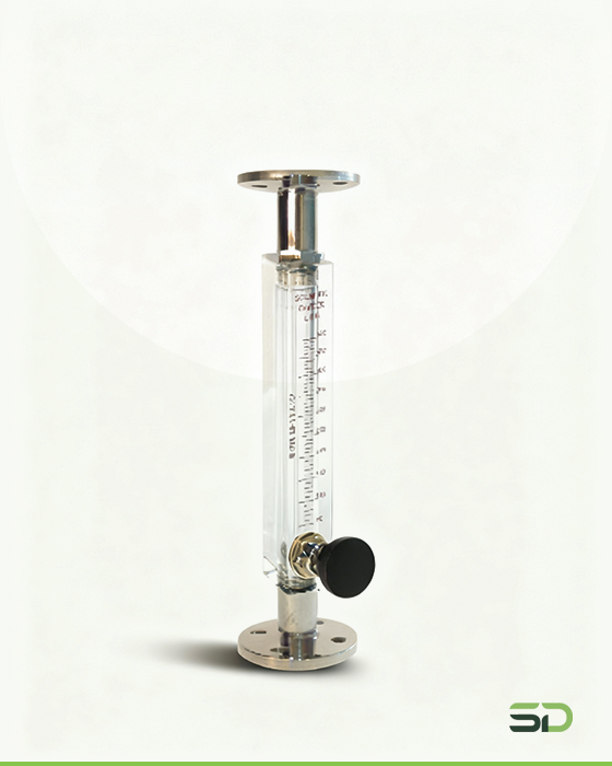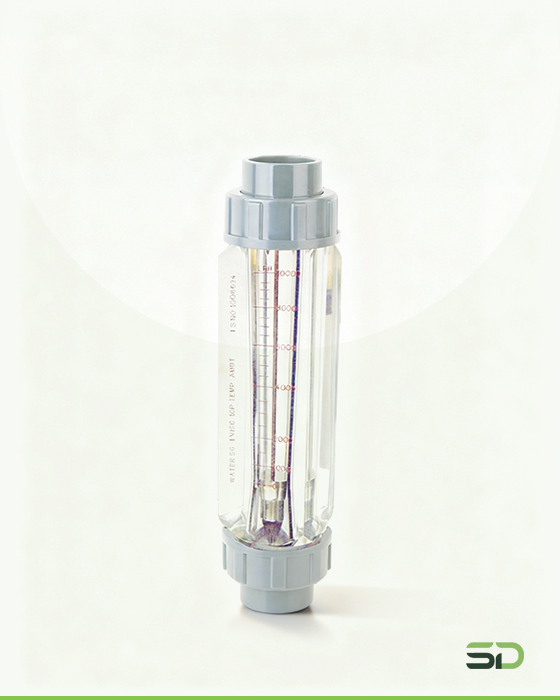 A float moves vertically inside a tapered flow tube; its position indicates the flow rate. Lightweight, corrosion-resistant, and easy to install, it is ideal for laboratories, water treatment units, and general-purpose flow monitoring in non-aggressive media.