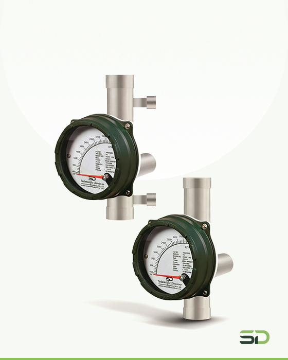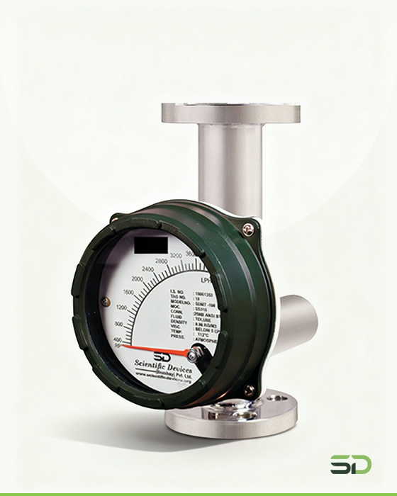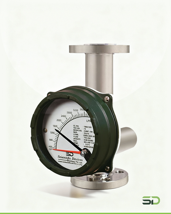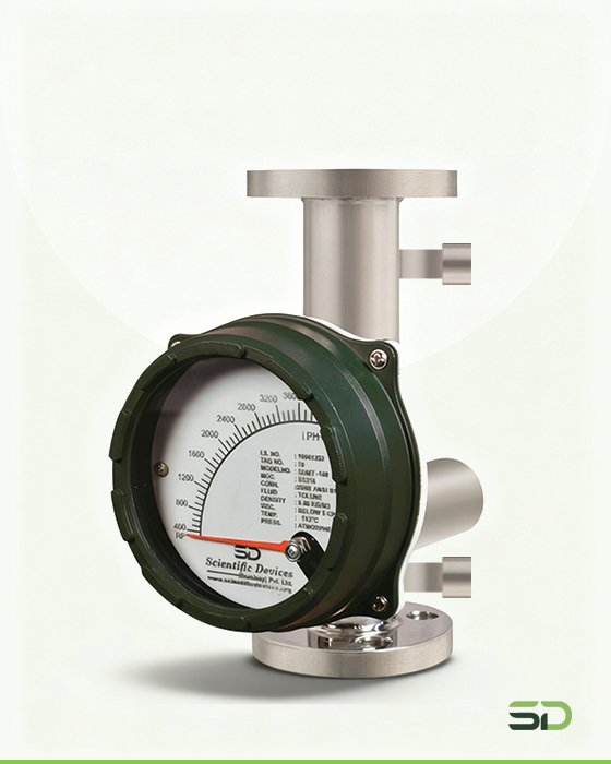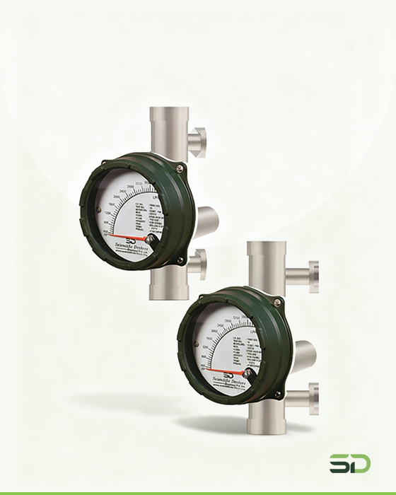 Metal Tube Rotameter (SDMT Series) The Metal tube rotameter operates based on the variable area principle, where a float moves vertically inside a tapered tube in response to the flow rate. As the flow increases, the float rises until the upward force of the flowing fluid equals the downward gravitational force. The float’s position corresponds to a specific flow rate, which is indicated via a magnetic follower mechanism on the external indicator.